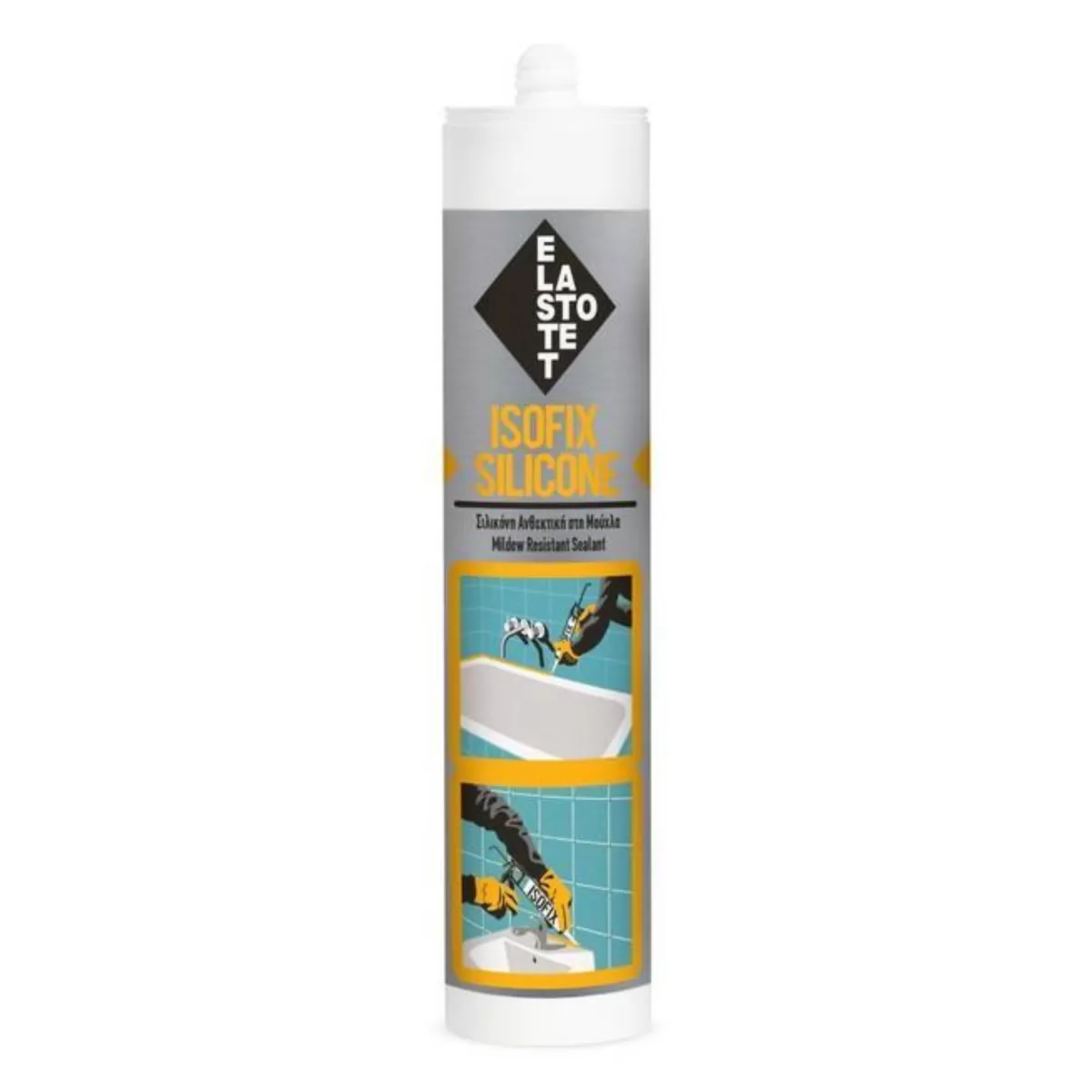 Σιλικόνη ακετοξική, ISOFIX SILICONE φύσιγγα 260ml της εταίριας ELASTOTET είναι κατάλληλη για σφράγιση συναρμογών σε μη πορώδη υλικά, όπως γυαλί, αλουμίνιο, πορσελάνινα πλακάκια, κεραμικά, κ.α.